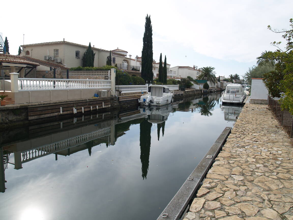 Terreno de 1000 metros al canal a la venta, cerca del centro de Empuriabrava y de la playa. Ofrecemos dos casas en el terreno: una casa pequeña de 80m2 habitables con cocina abierta, comedor - salón, 2 habitaciones y un cuarto de baño; y una segunda casa con 128m2 habitables en planta baja con comedor - salón con chimenea, cocina independiente, aseo para invitados, 2 habitaciones, un cuarto de baño y lavadero-trastero. En la primera planta hay cuatro habitaciones y dos cuartos de baño. Además, la propiedad cuenta con un garaje cerrado, un garaje cerrado para barco y un amarre de 20 metros. Podrás disfrutar de un jardín y una piscina privada.